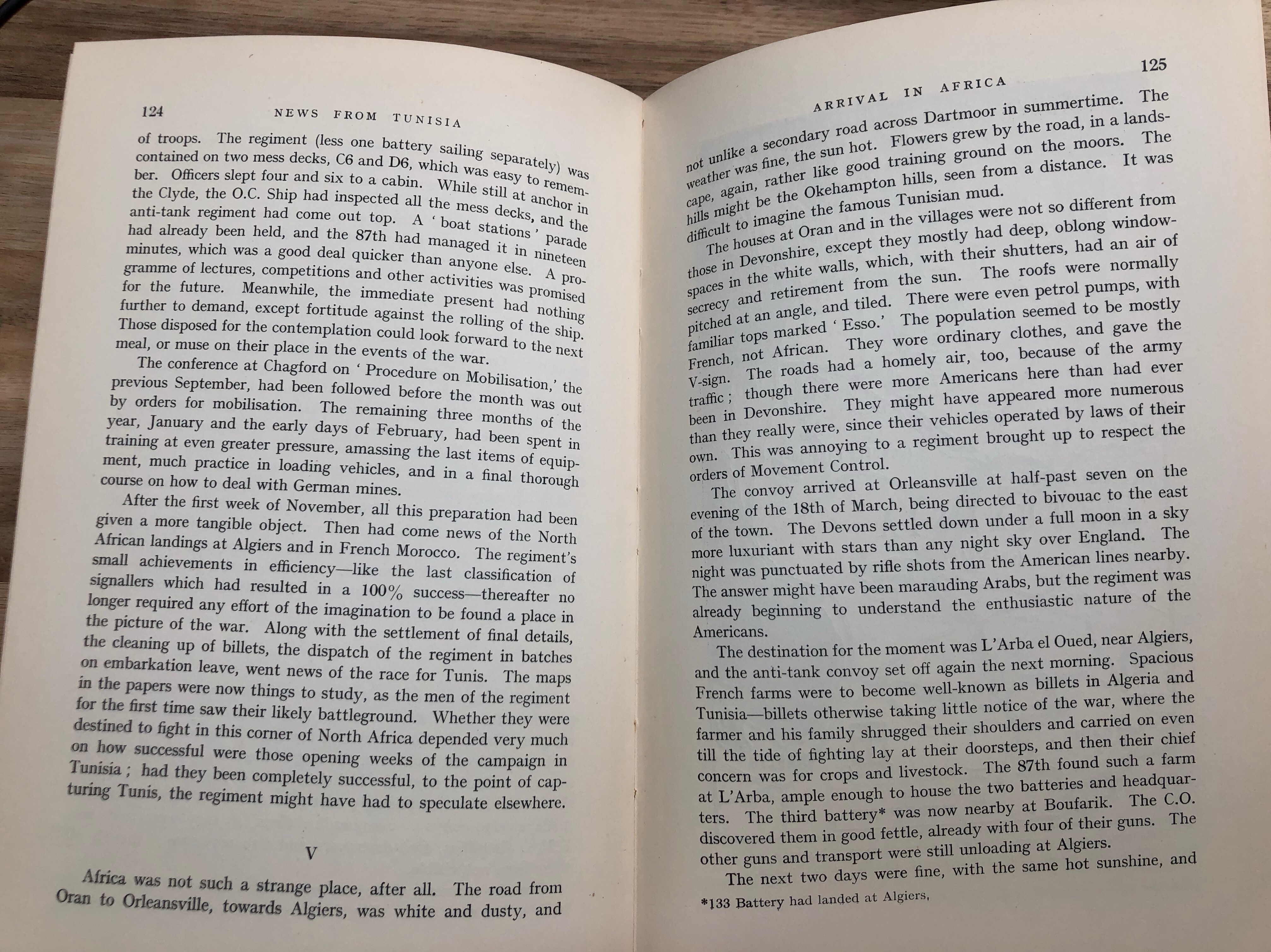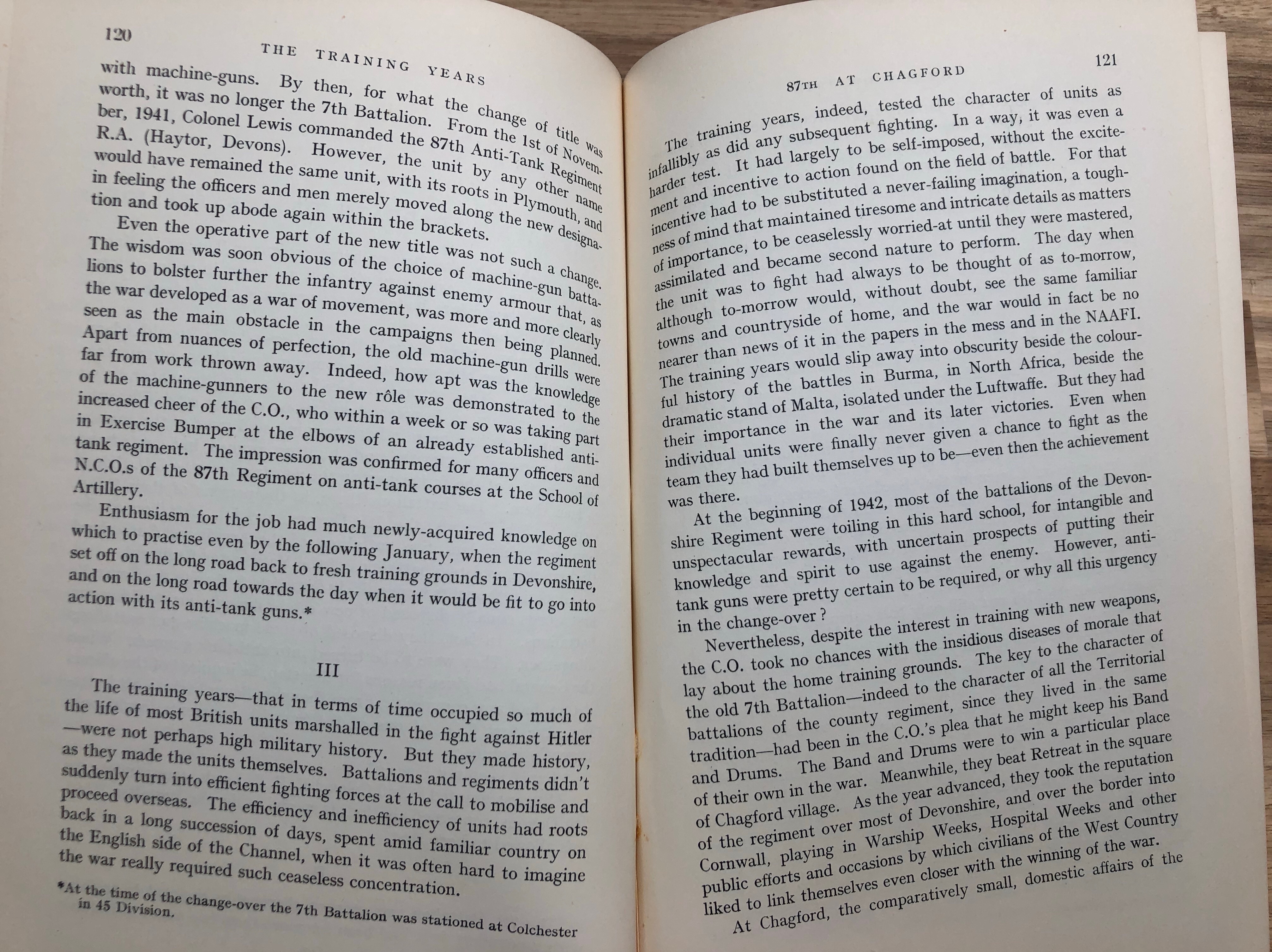 To aid family members researching 7th Devon’s/87th Anti-Tank I have included the below images of the relevant chapter on 87th’s deployment to North Africa. The author evidently used the war diaries but adds other information researchers may find interesting. There are sporadic references to 7th Devons elsewhere in the book.